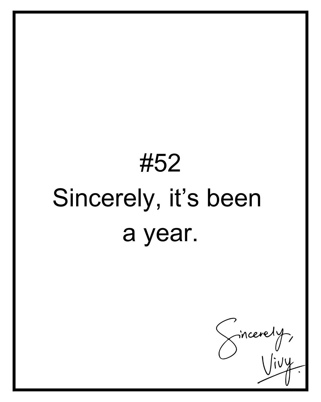 52 weeks of Sincerely, Vivy. 🥳