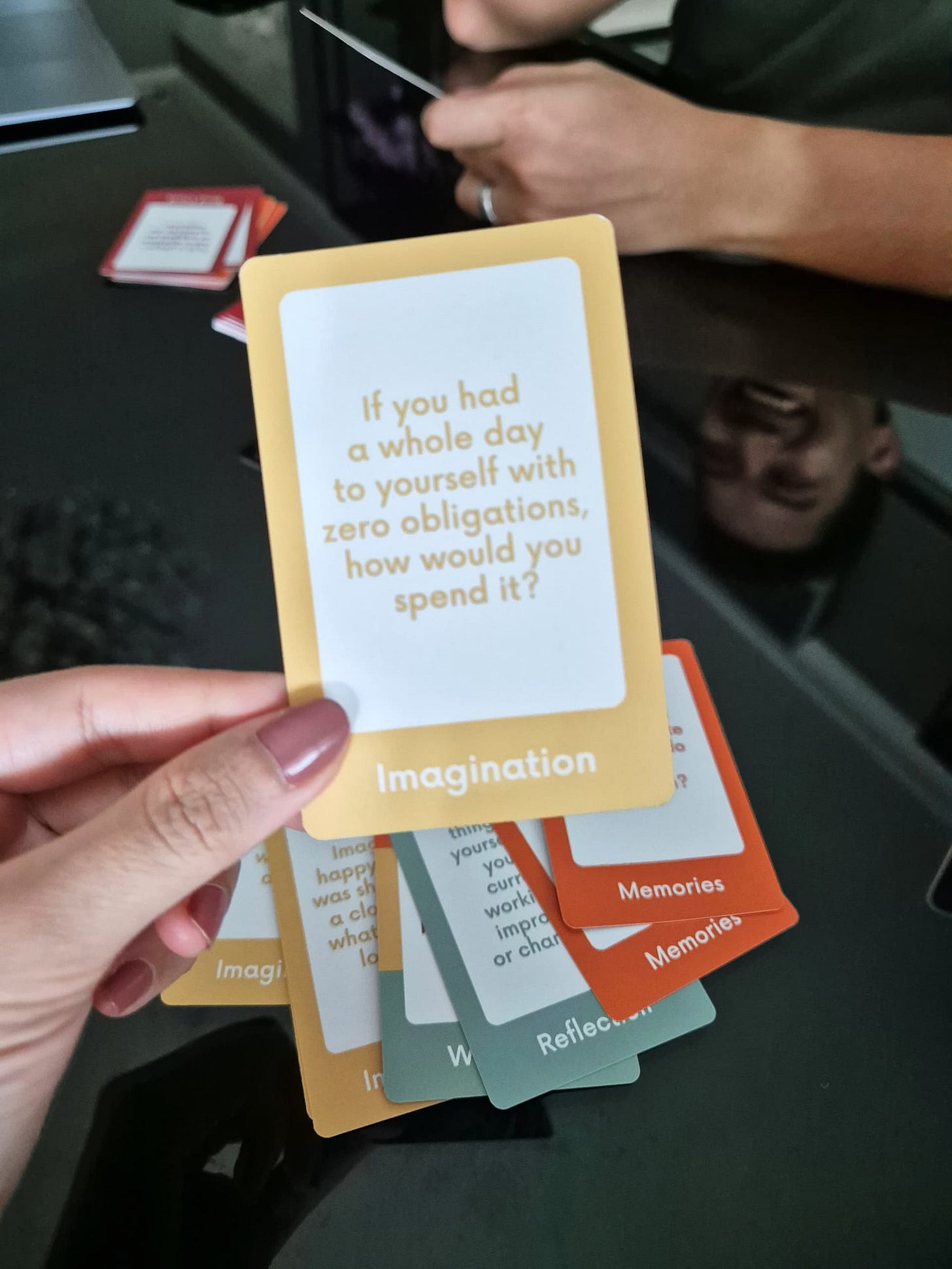 I have the Heart to Heart one and forced Fadza to play, and honestly we had so much fun. Then I played it again with my best friends and Mariam, and we laughed so much all the way till midnight. It’s a card game with questions and action cards, for us to get to know each other better. Highly recommended for family and friends games nights!