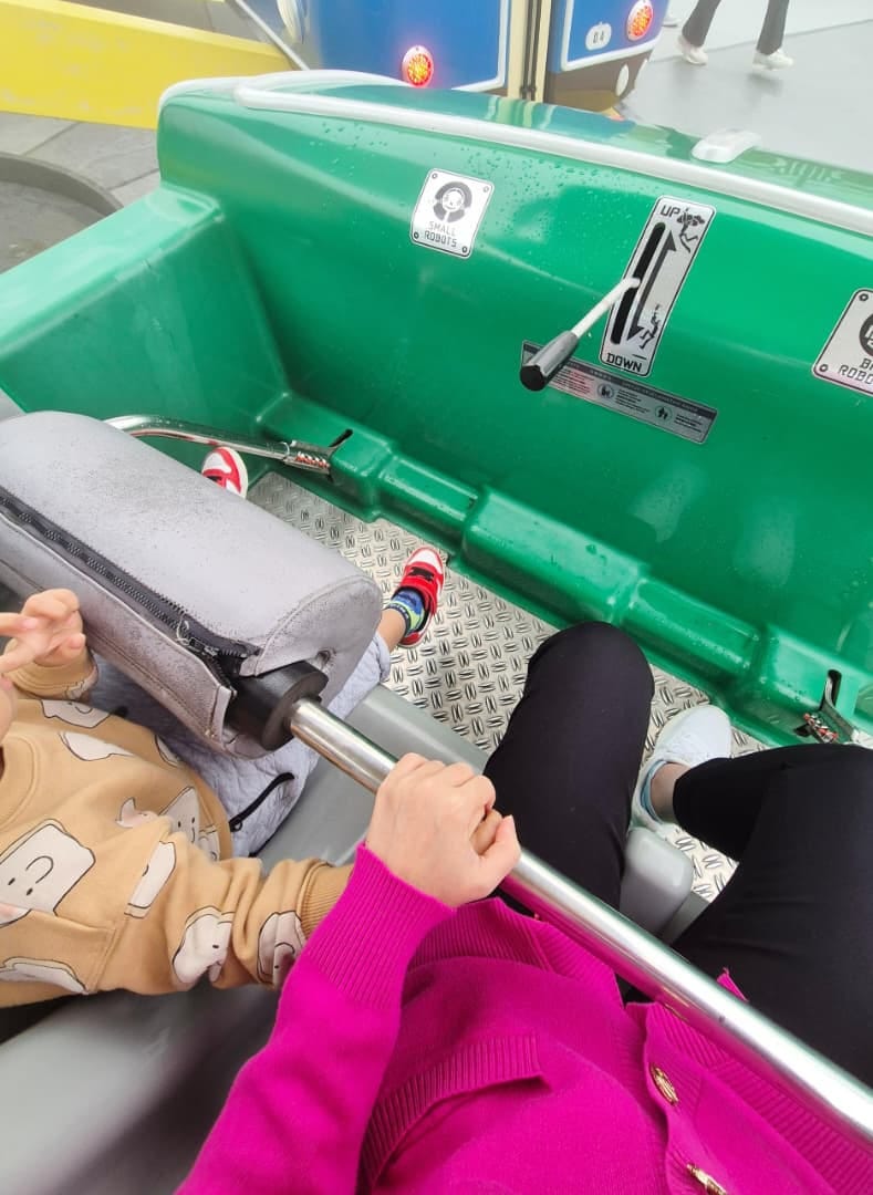 The other kids were with Fadza going on the bigger ride. Poor little Idris didn't have much choice, so off we went to this robot flying car ride that allowed Idris’ height.