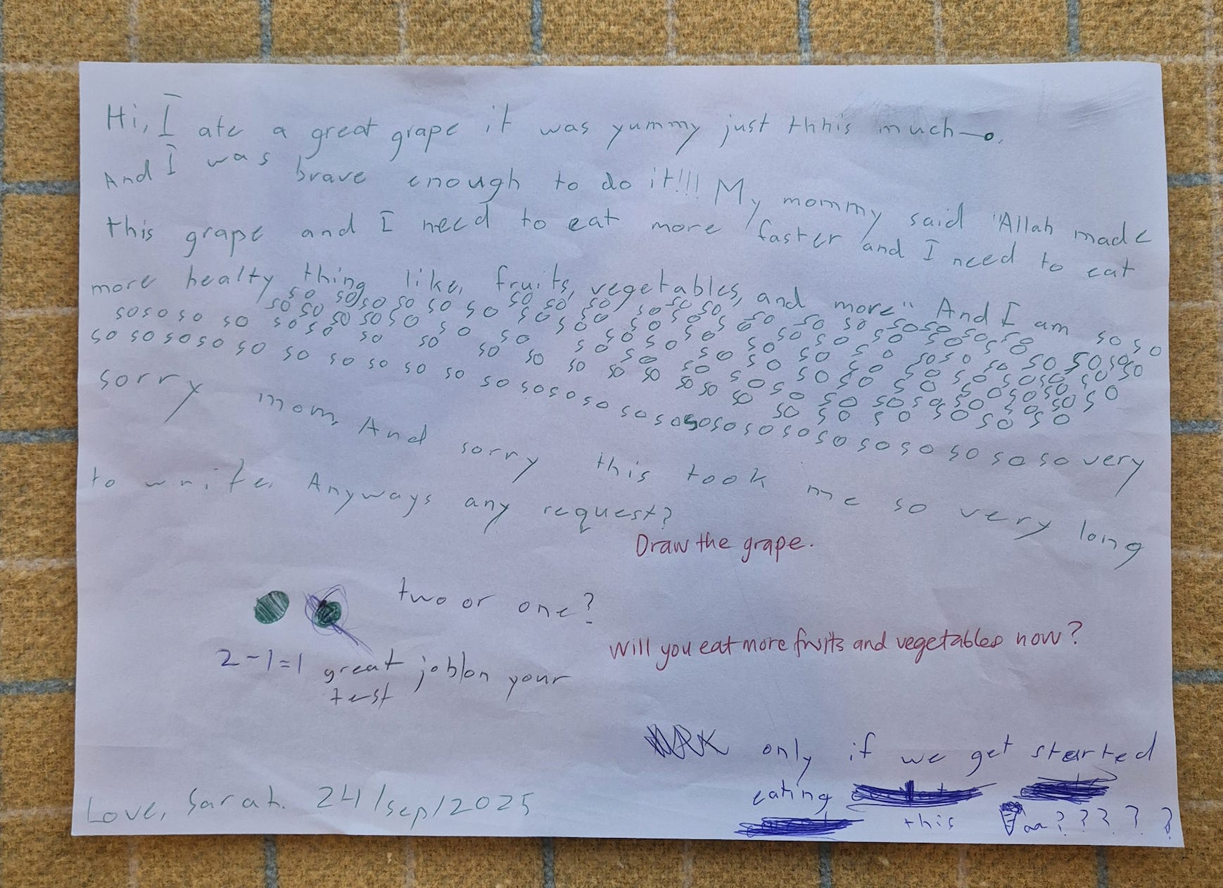 So I made her draw the grape.