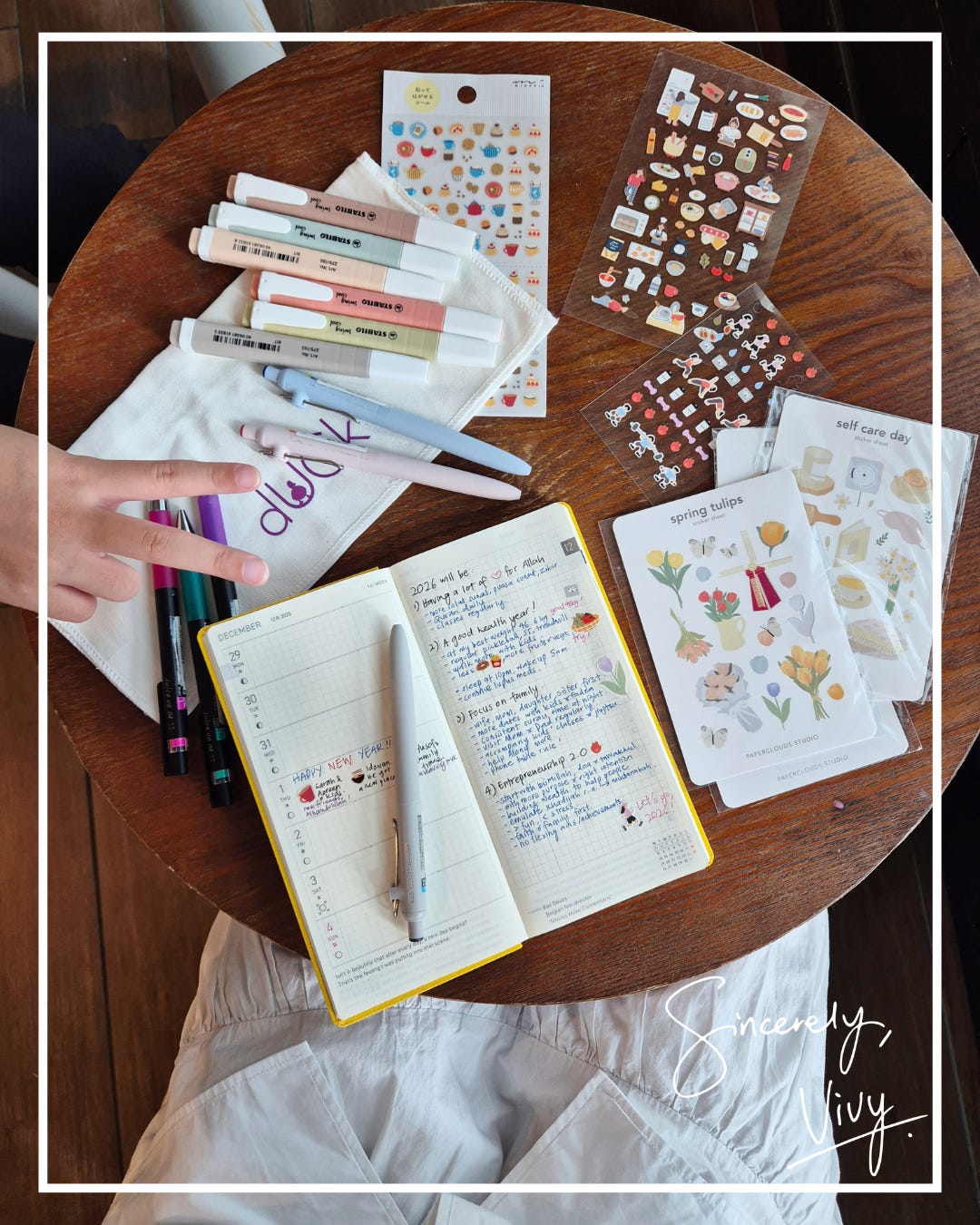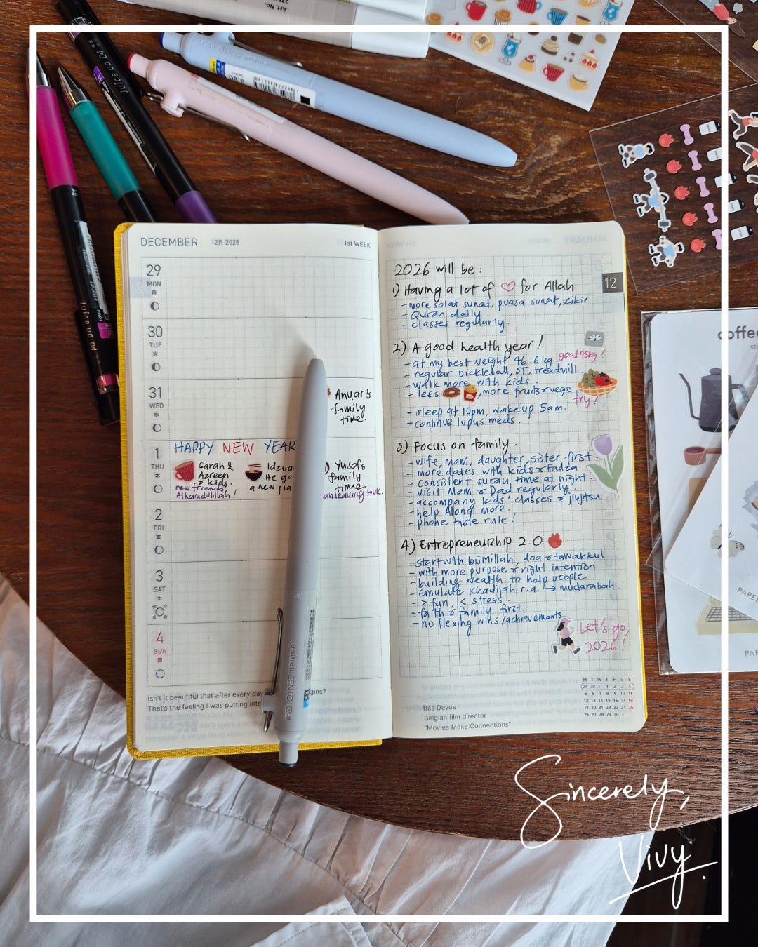 Hope you’ve done yours too, because it’s important to start the year with intention. Whether on your phone app like a normal person, or with a bag of stickers and highlighters in hand - I won’t judge.