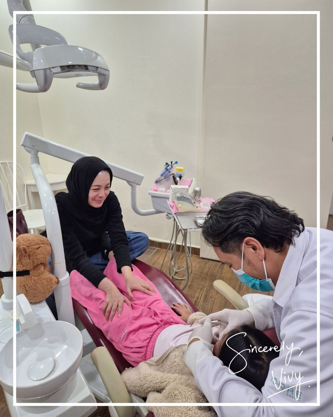 First, she wanted to doa – so we had to do ayat kursi, the three Quls and say Bismillah together, including Dr Ibrahim and his nurses. Then second, she wanted to just “test”. Like just put the needle on the gum for her to “feel” it. From there, the doctor put the injection in so softly that I think she had no idea it was already happening. Then we counted to ten together. The doctor pulled the needle out and I think the entire clinic, even the walls, clapped for Sarah.