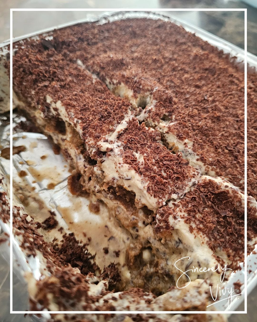 I took a bite of my tiramisu, quietly.