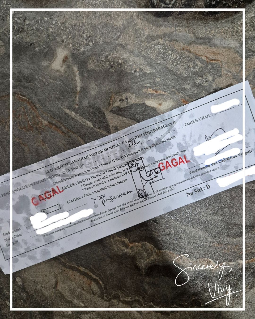 Again, there were 200 people waiting there that day. I searched for my name on the board. There I was. VIVY SOFINAS YUSOF… Number 200. Out of 200 people. Yep, I was last. I’ll have to watch 199 people drive in front of me and most likely pass, before I even get into the car.