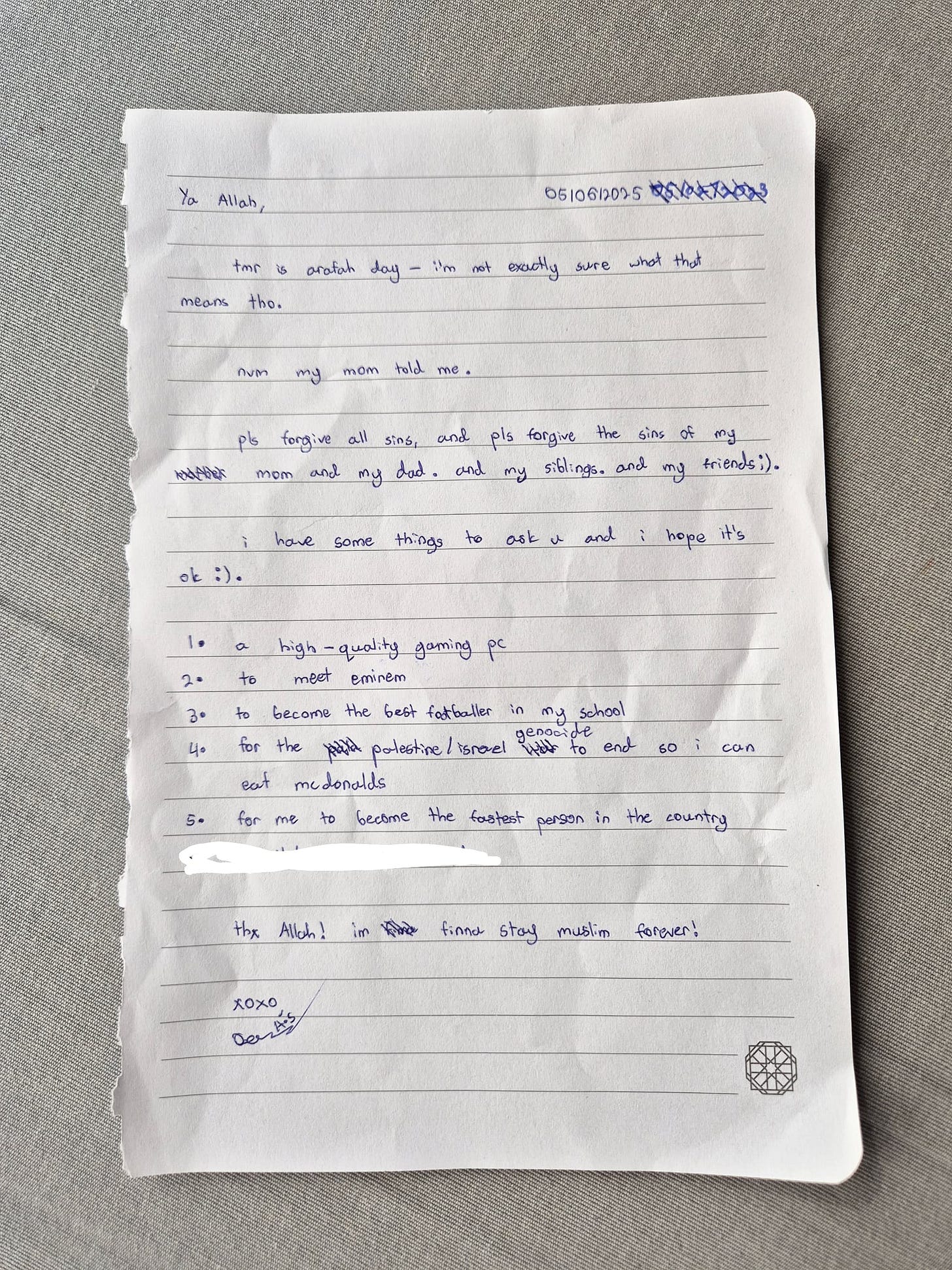“Do we write “Hi Allah, how are you?” first?” Sarah asks innocently.